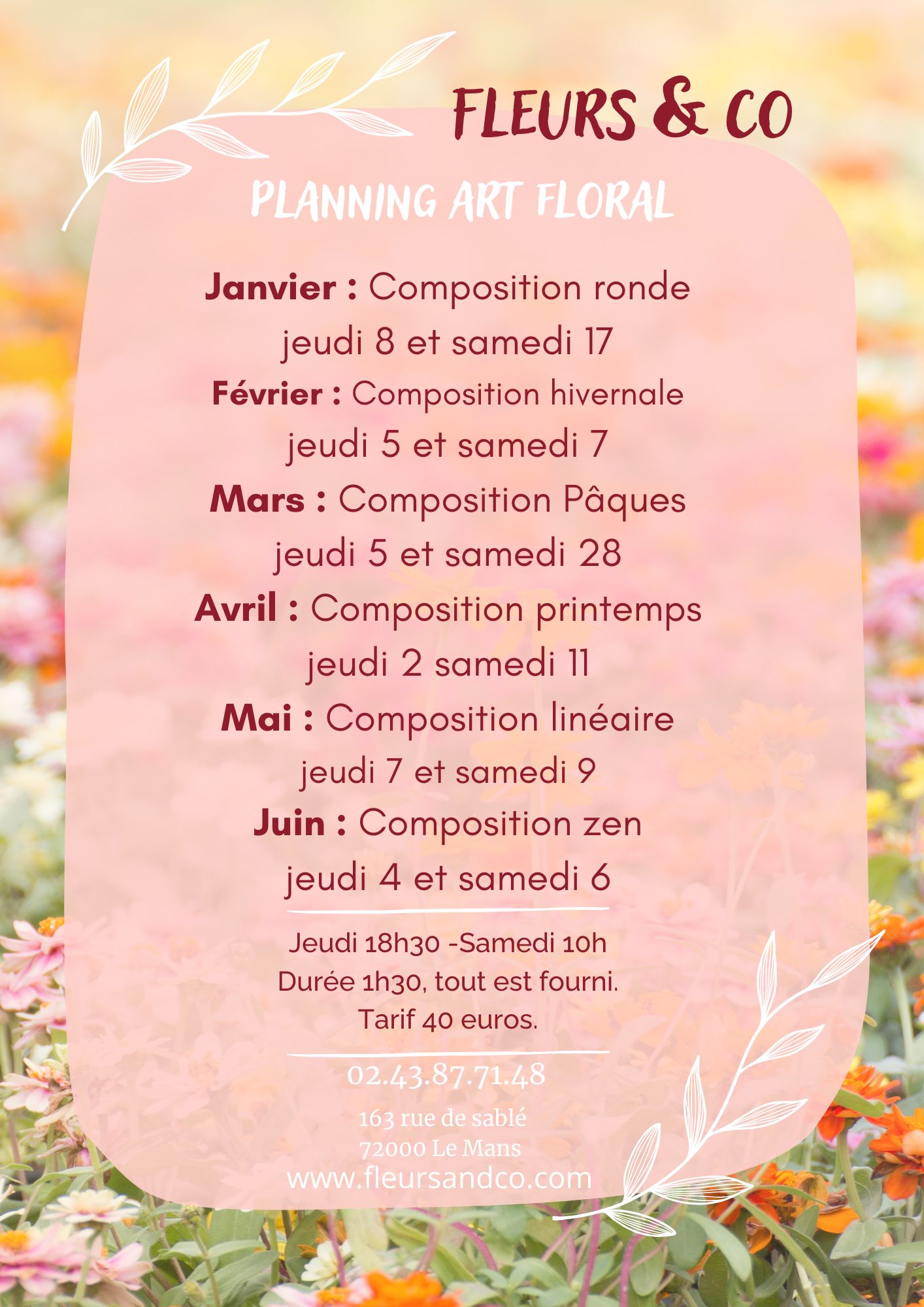 J’adapte le calendrier des cours d’Art Floral en fonction des évènements.
